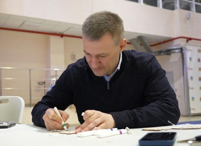 Чемпионы по самбо Тимур Галлямов, Леонид Путинцев, Владимир Гладких, Артур Хапцев, Евгений Еремин и Станислав Скрябин вместе с координатором проекта «Выбор сильных» в Свердловской области Алексеем Сваловым оставили на елочных игрушках автографы и добрые пожелания.
