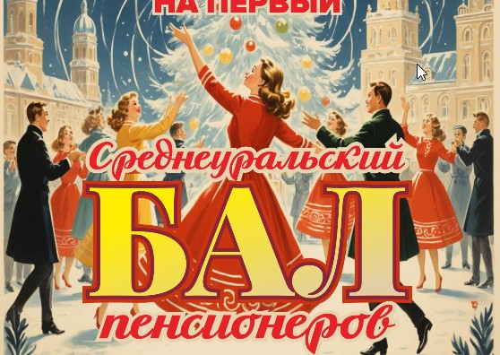 Администрация городского округа Среднеуральск совместно с местным Дворцом культуры и газетой «Пенсионер» организует праздничное мероприятие для жителей старшего поколения. Новогодний бал пройдёт 16 декабря в 15:00 во Дворце культуры, вход для пенсионеров будет свободным.