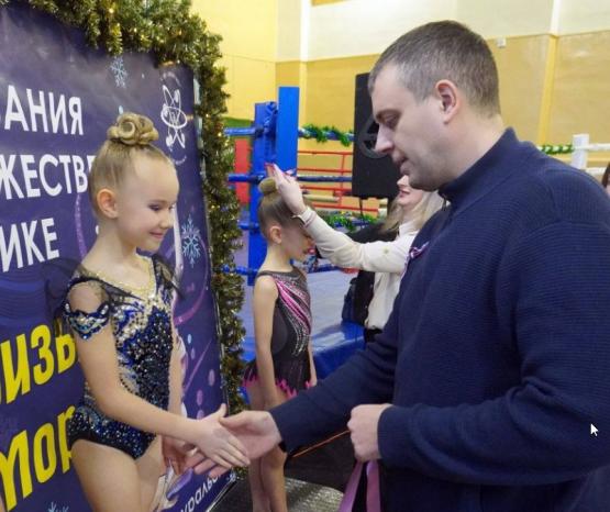 Глава Среднеуральска Алексей Стасенок поздравил юных гимнасток с победой в новогоднем турнире