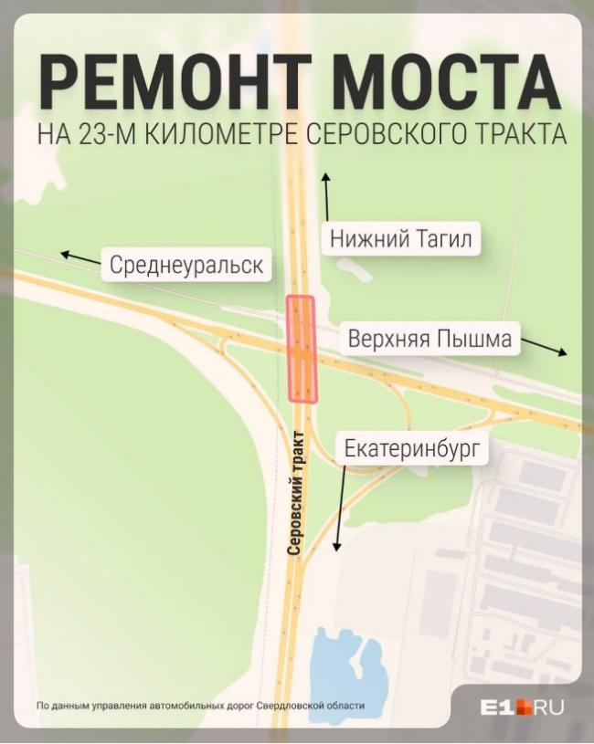На Серовском тракте отремонтируют 90-метровый мост, который является частью двухуровневой развязки. Она расположена на 23-м километре дороги и служит для распределения транспортных потоков в направлении Верхней Пышмы, Среднеуральска и поселка Исеть.